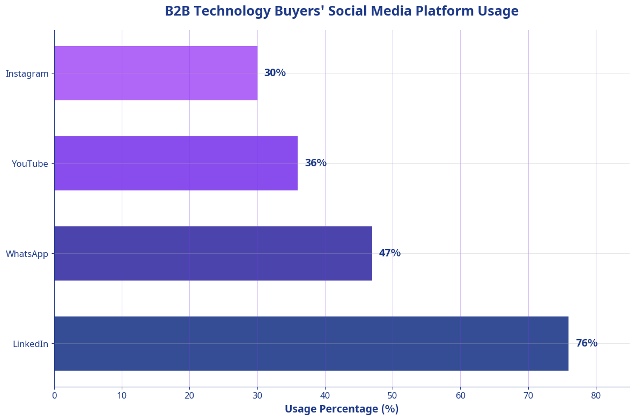 While LinkedIn remains the anchor, YouTube and Instagram are rising as strong second-tier channels. More surprisingly, platforms like TikTok, Reddit, and private WhatsApp groups are demonstrating significant strength among Gen Z and Millennial buyers.